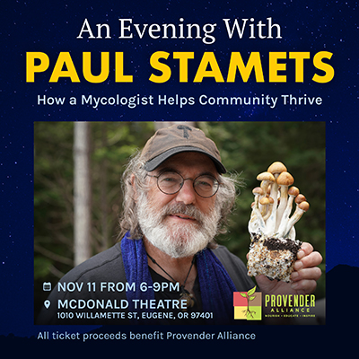 November 11, 2025 – Provender Alliance Presents – An Evening with Paul Stamets: How a Mycologist Helps Community ThriveBuy Tickets Event Info